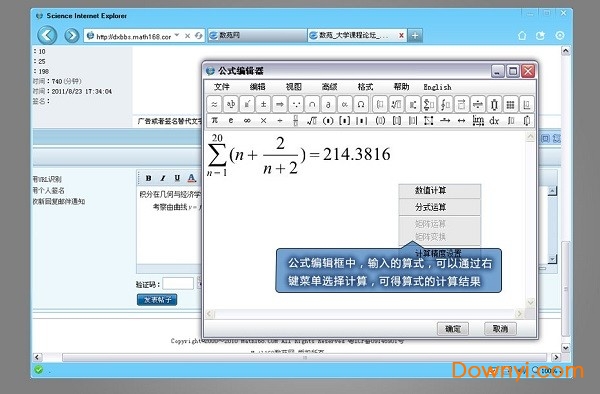 数苑科学浏览器science ie是数苑科技结合自行研发的网页公式与图形格式、基于ie核心开发的浏览器。本浏览器已集成了数苑网页公式编辑器sciyard mathplay和网页图形编辑器sciyard graphplay,免去了下载公式和图形编辑器的操作,从而极大地提高了公式和图形的解析速度。其体积小、不含广告插件,启动速度和浏览速度较其它浏览器快,并拥有屏蔽广告与恶意插件等实用功能。本浏览器可运行于各种语言版本的windows 系统平台中,用户可以windows操作系统支持的各种语言进行网络交互。