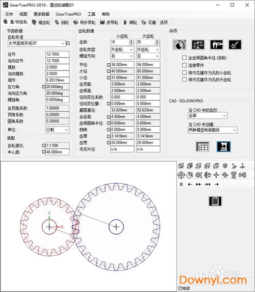 1、直观易用,功能强大;真正的精确渐开线齿廓,渐开线齿廓曲线可导入solidworks草图