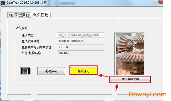 4.然后回到软件,选择“永久注册”,点击“浏览注册文件”,选择之前存放在桌面的注册文件,然后你就可以点击“接受许可”