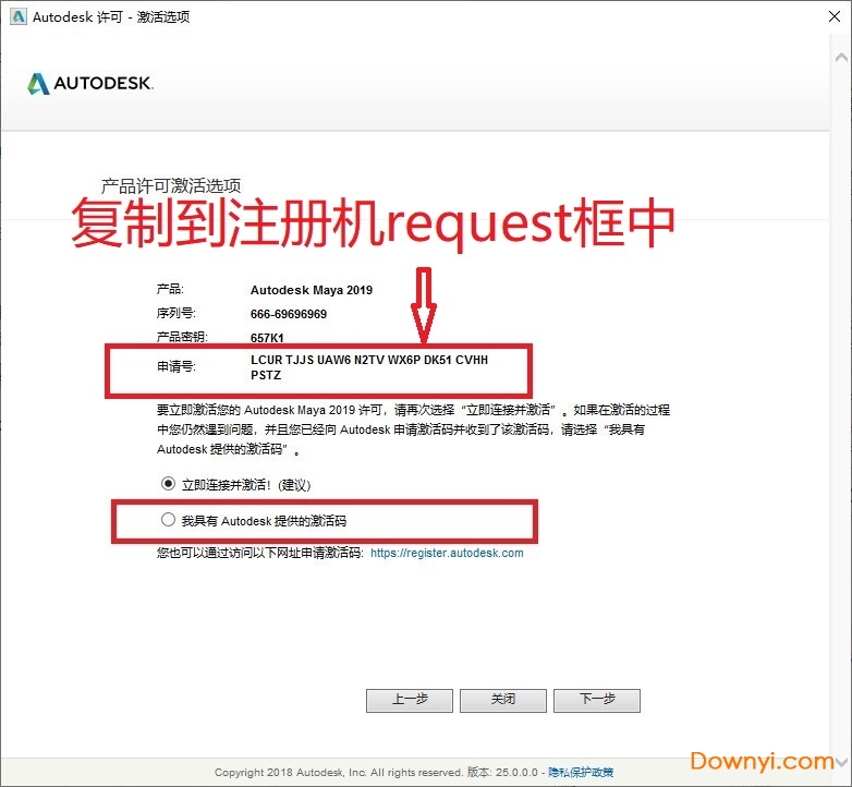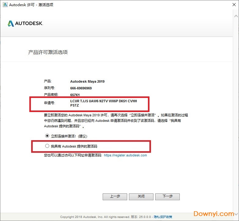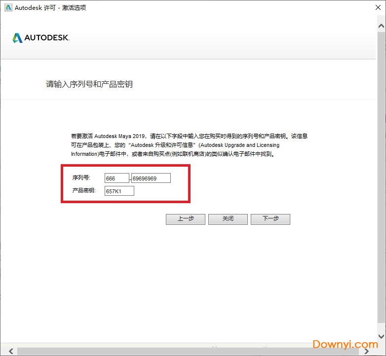 2、输入maya 2019序列号:666-69696969, 667-98989898, 400-45454545,066-66666666(选择用其中一组即可)注册密钥:657k1
