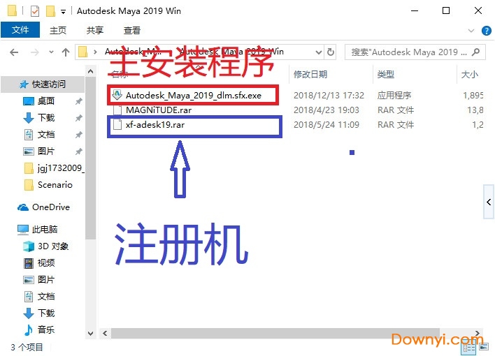 1、在本站下载资源包后解压缩,如图所示,得到安装程序以及注册机;